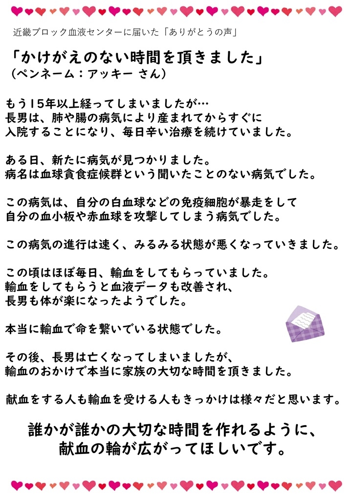 かけがえのない時間を頂きましたありがとうの声大阪府赤十字血液センター日本赤十字社。