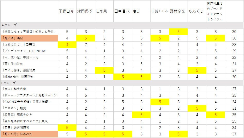 1回戦ジャッジ採点および評ブンゲイファイトクラブ BFC。