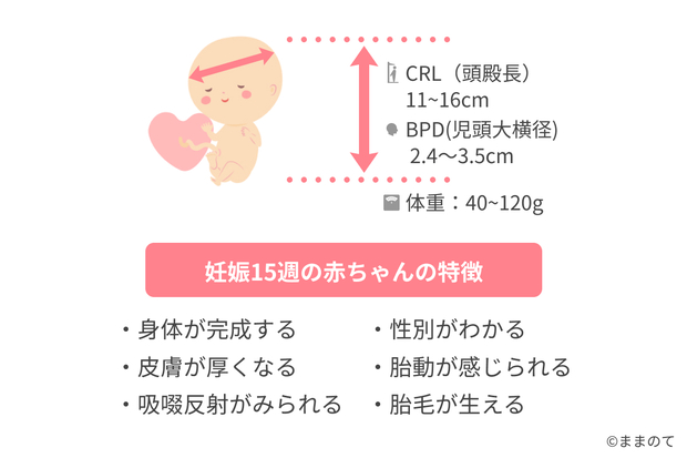 産婦人科医監修 妊娠15週胎動を感じるママも!お腹の出方や赤ちゃんの成長 エコー写真付きままのて。