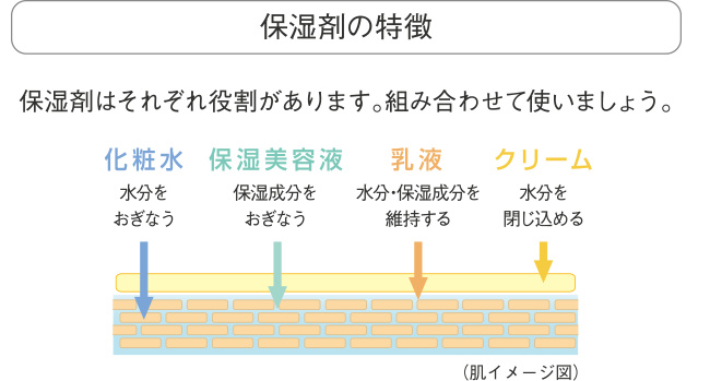 \知っておきたい 保湿剤の役割についてご紹介します 乾燥が気になる季節・ 乾燥・肌あれ対策には毎日の保湿が重要です! 保湿剤には、化粧水、美容液、 乳液、クリームなどの種類があり、それぞれ保湿剤の。