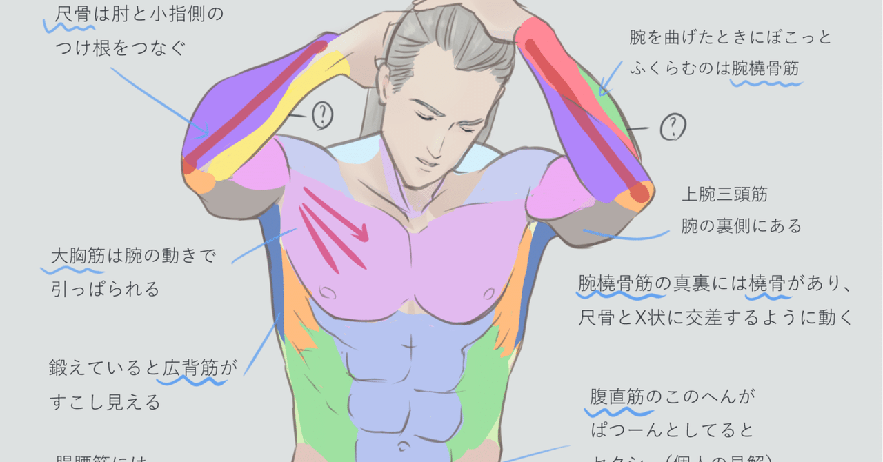 かまた@筋肉専門イラストレーター on X: "※スレッド用に再掲マッチョ描きのつぶやき上腕筋上腕二頭筋や上腕三頭筋が有名なので忘れがちだけど、この上腕筋を意識して描くことで腕の筋肉に迫力が出てくると思う。筋肉描き方https:t.co uQZkgsP1jE"X。