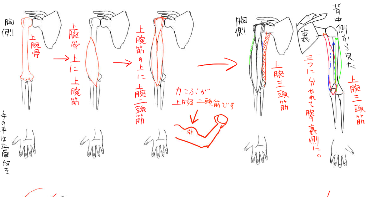 男らしい腕の描き方!重要なたった3つの筋肉と2つの骨絵師ノート。
