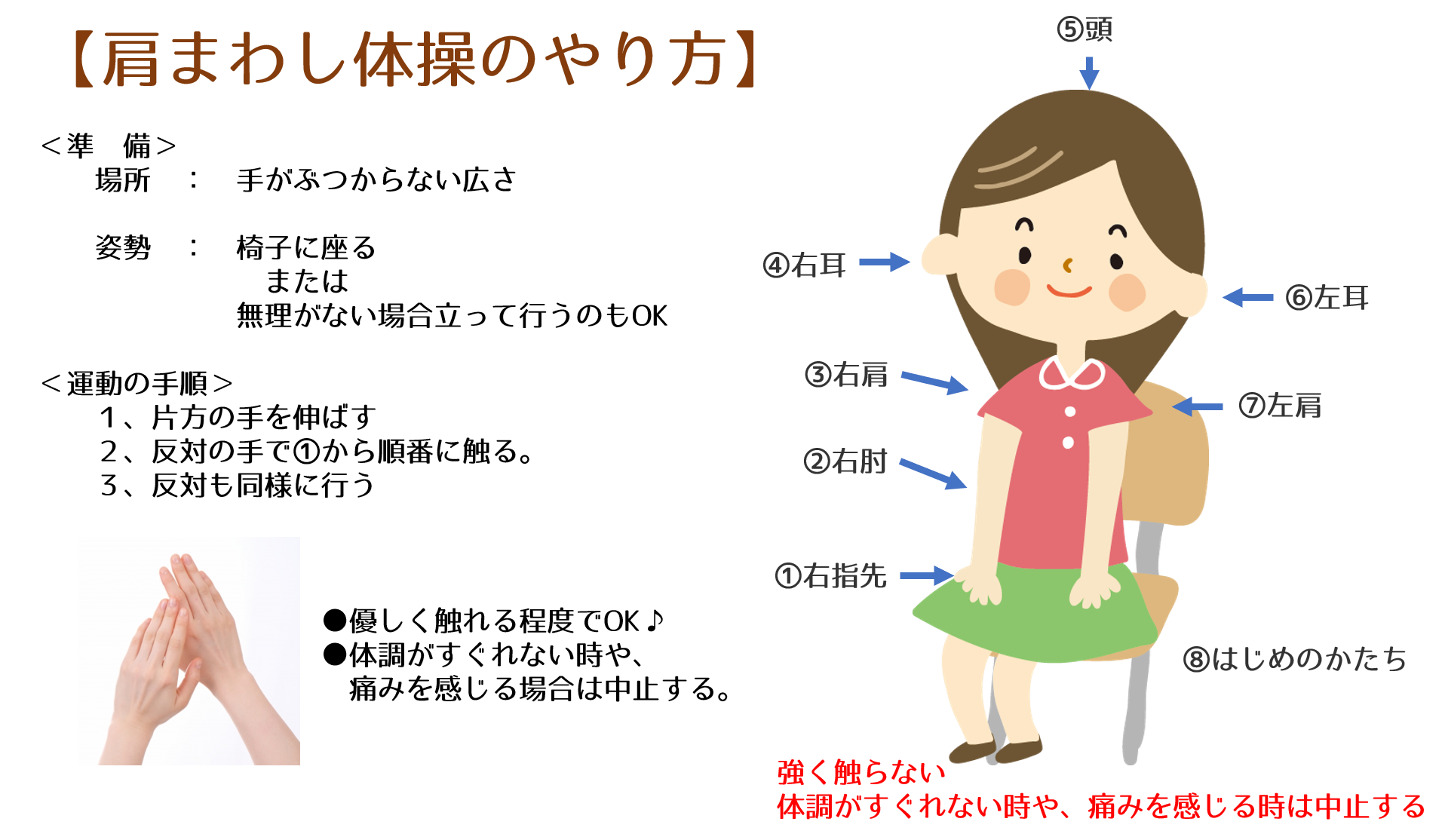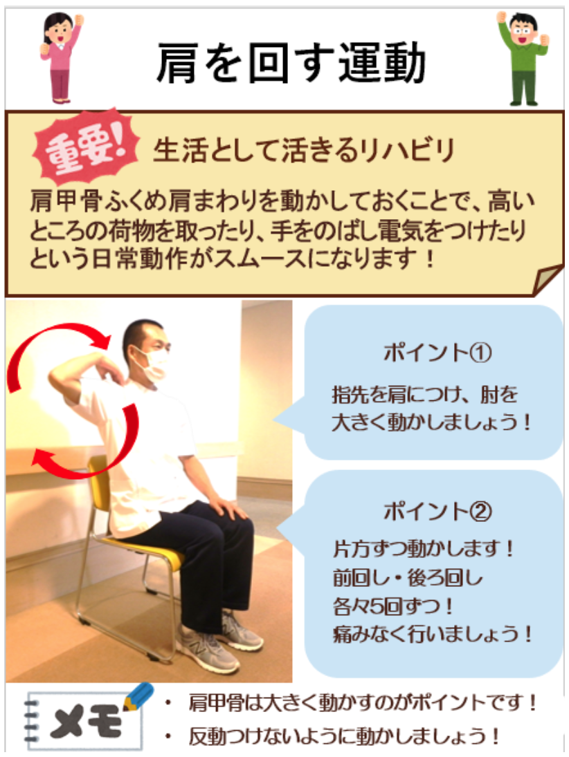 肩回し体操自主トレばんく 筋トレ・ストレッチ・リハビリのイラスト資料。