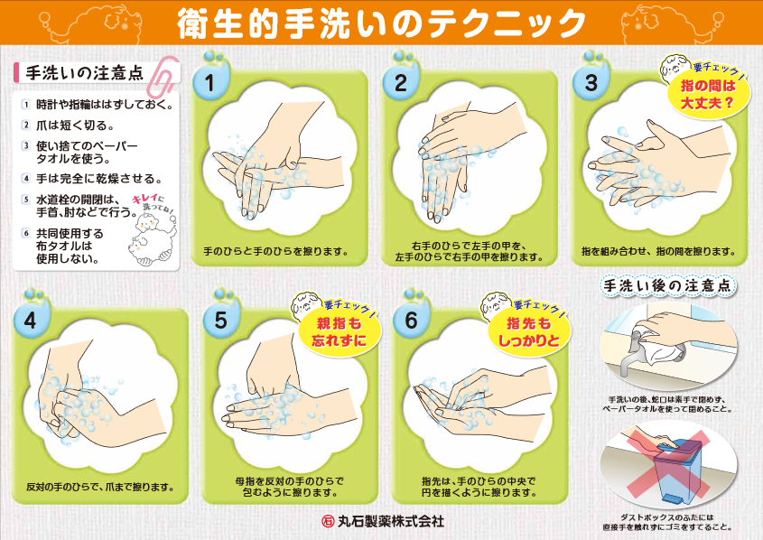 新型コロナウイルス 感染症予防のための正しい手洗い方法。