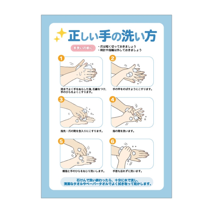 感染予防シール 正しい手の洗い方 A4-G大判プリントの達人。