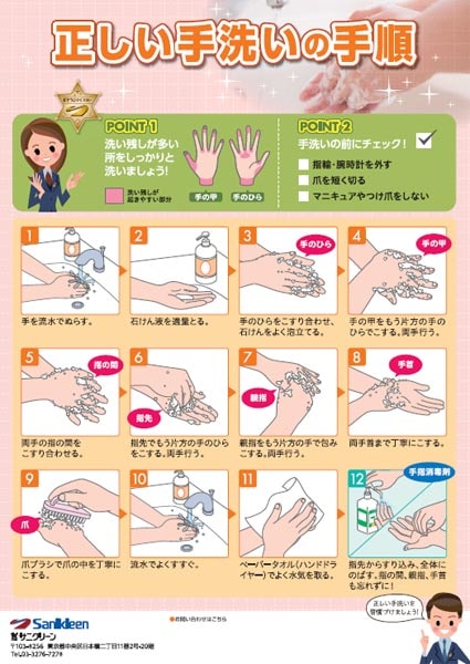 正しい手洗いの手順」をダウンロードできますお知らせサニクリーン九州 ご家庭向け。
