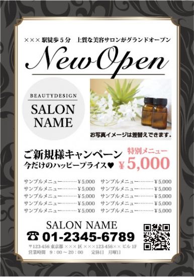 エステサロン チラシサンプル オシャレだけど黒で高級感をプラス✨エステエステティシャンエステサロン開業開業チラシデザイン受けてますチラシデザインチラシ制作チラシ作成。