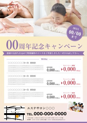 エステサロン_特売・キャンペーン・商品紹介チラシ・フライヤーの無料デザインテンプレート - ネット印刷グラフィック。