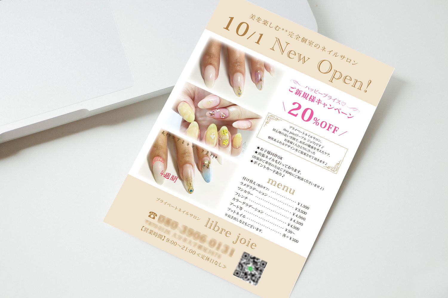 お洒落メニュー表作成 サロン開業パンフレットチラシデザイン制作 - サロンデザイン作成エステ・ネイル・マツエク・美容チラシ ・名刺カード・リーフレット・ポスタ。