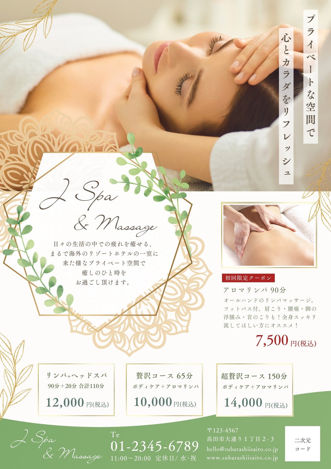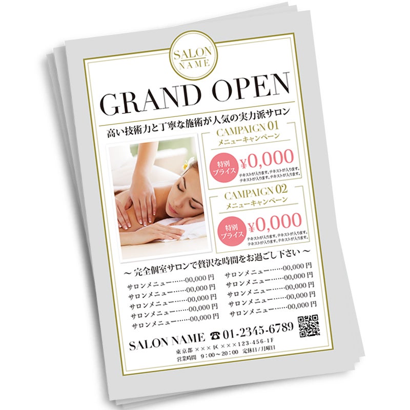 リラクゼーションサロンのチラシ無料テンプレート・デザインサンプル - ネット印刷グラフィック。