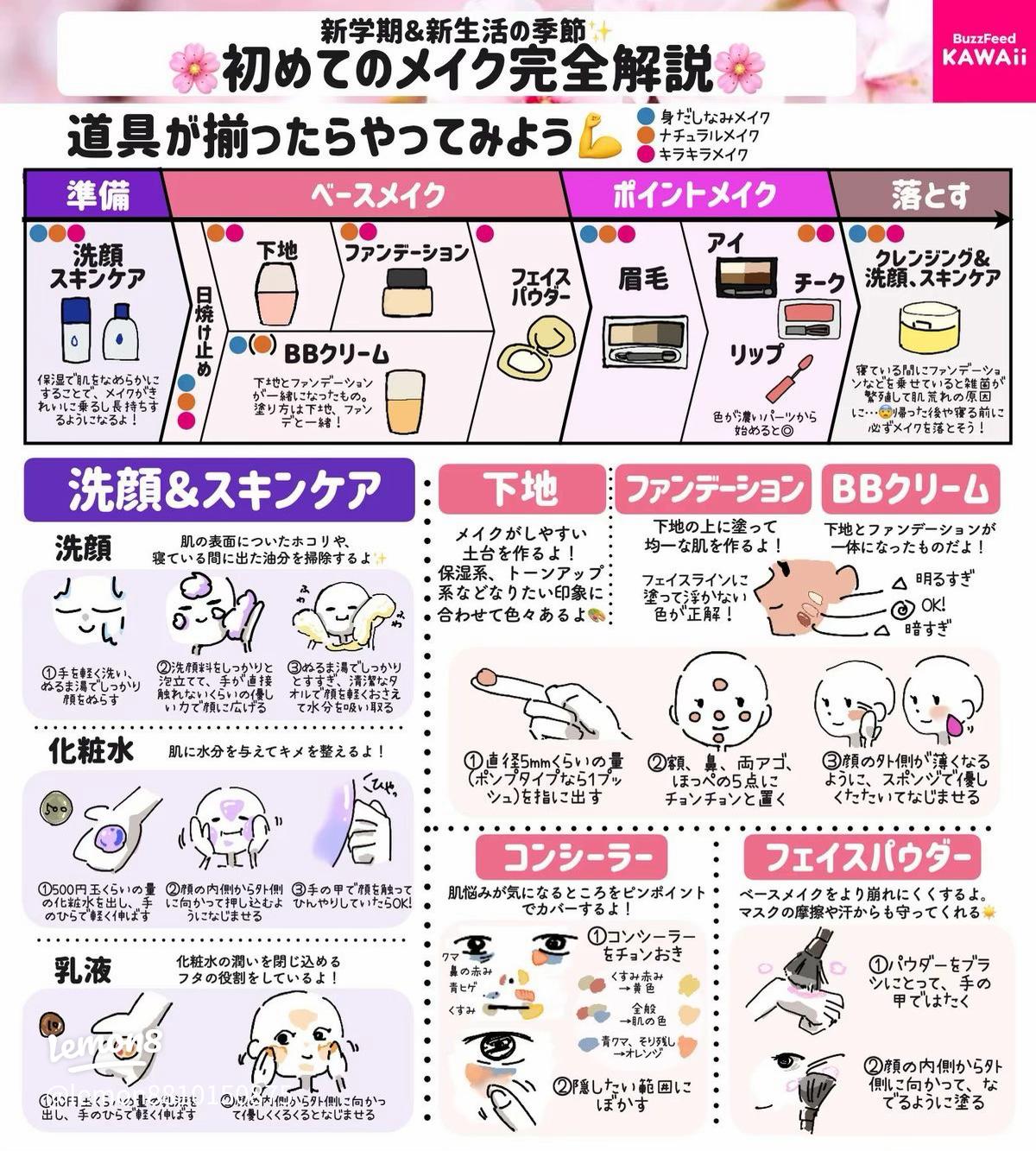 BuzzFeed🌼Kawaii on X: "これからメイクを始めたい人へ🌼 メイクの基本のやり方や、知っておきたい用語をまとめました💄https:t.co zUJYwUyOoN"X。