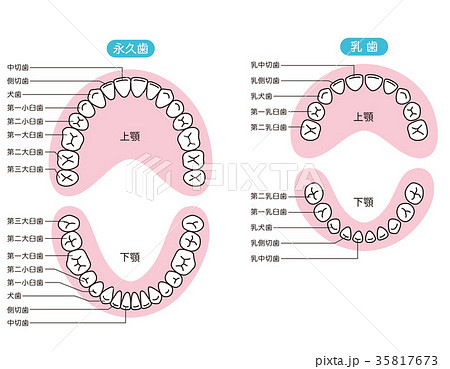 永久歯と乳歯の歯列とその名称の解説セットのイラスト素材121158383- PIXTA。