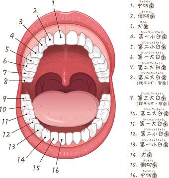 大人の歯・永久歯の歯並び歯の名称 ベクターイラスト英語 のイラスト素材66253311- PIXTA。