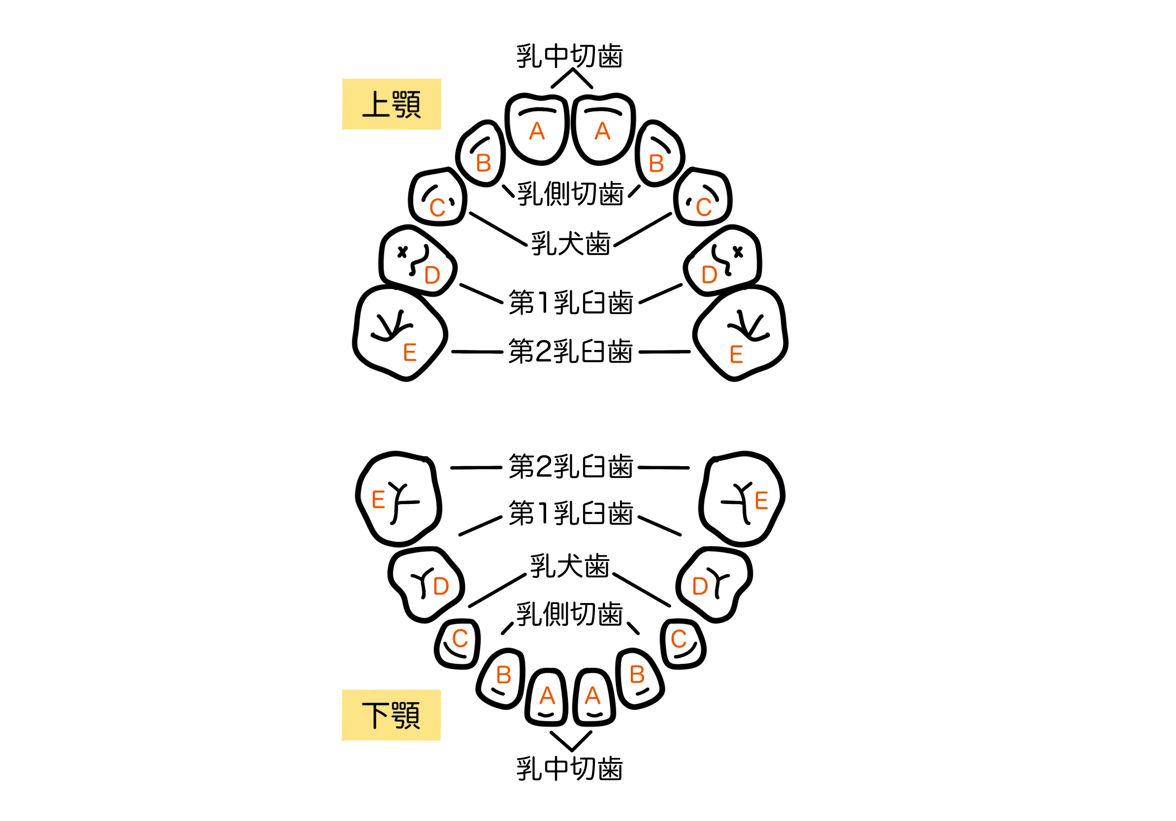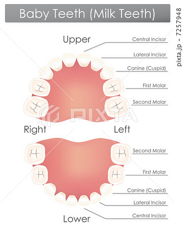 乳歯が生える過程の解説イラスト ヨコ1列、見出し+本数+歯の名称つき のイラスト素材80587455- PIXTA。