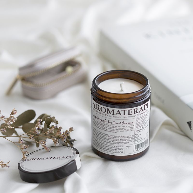 KLINTA アロマセラピー マッサージキャンドル 180ml ティーツリー ゼラニウム レモングラス オレンジ シダーウッド AromaterapiMssage Candle スウェーデン イギリス - Nature Ave。