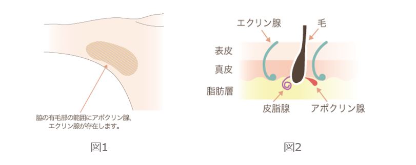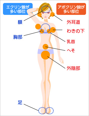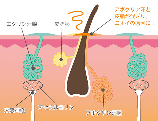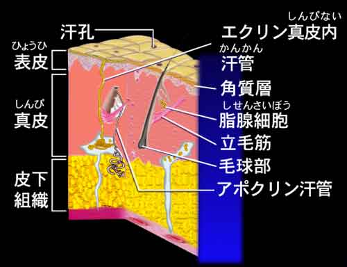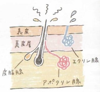 皮膚の断面図と汗腺の種類イラスト 皮脂腺・アポクリン汗腺・エクリン汗腺 のイラスト素材37354976- PIXTA。