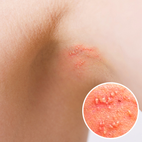 脇の膿疱皮膚トラブルの状態チェックヒフシルワカル。