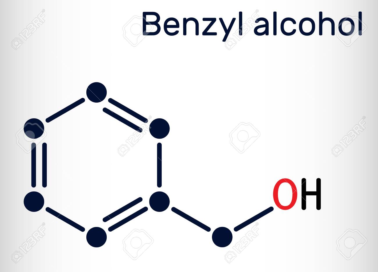 ベンジルアルコール、C7H8O分子。それは芳香族アルコールであり、局所麻酔薬として、そして香水で、化粧品製剤において使用される。骨格化学式。ベクターイラストレーションのイラスト素材・ベクターImage 145776193。