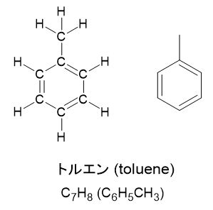 トルエン C7H8 の化学式・分子式・構造式・電子式・示性式・分子量は?トルエンの代表的な用途は。