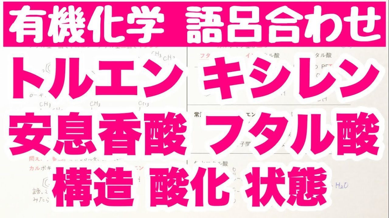 語呂合わせ トルエンキシレン安息香酸フタル酸の覚え方 構造の語呂合わせ酸化と状態芳香族有機化学ゴロ化学。