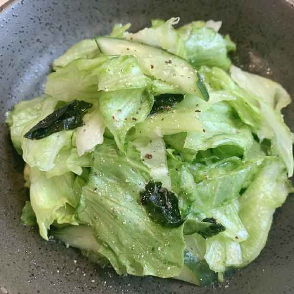 糖尿病のある方向け栄養バランス献立 鮭と豆苗のレンジ蒸しと塩昆布あえ。