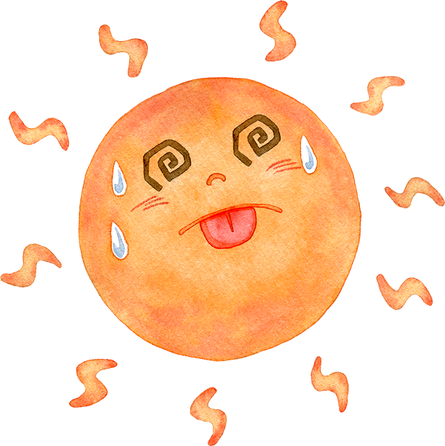 暑すぎる太陽のキャラクターの水彩イラスト水彩の挿し絵屋さん。