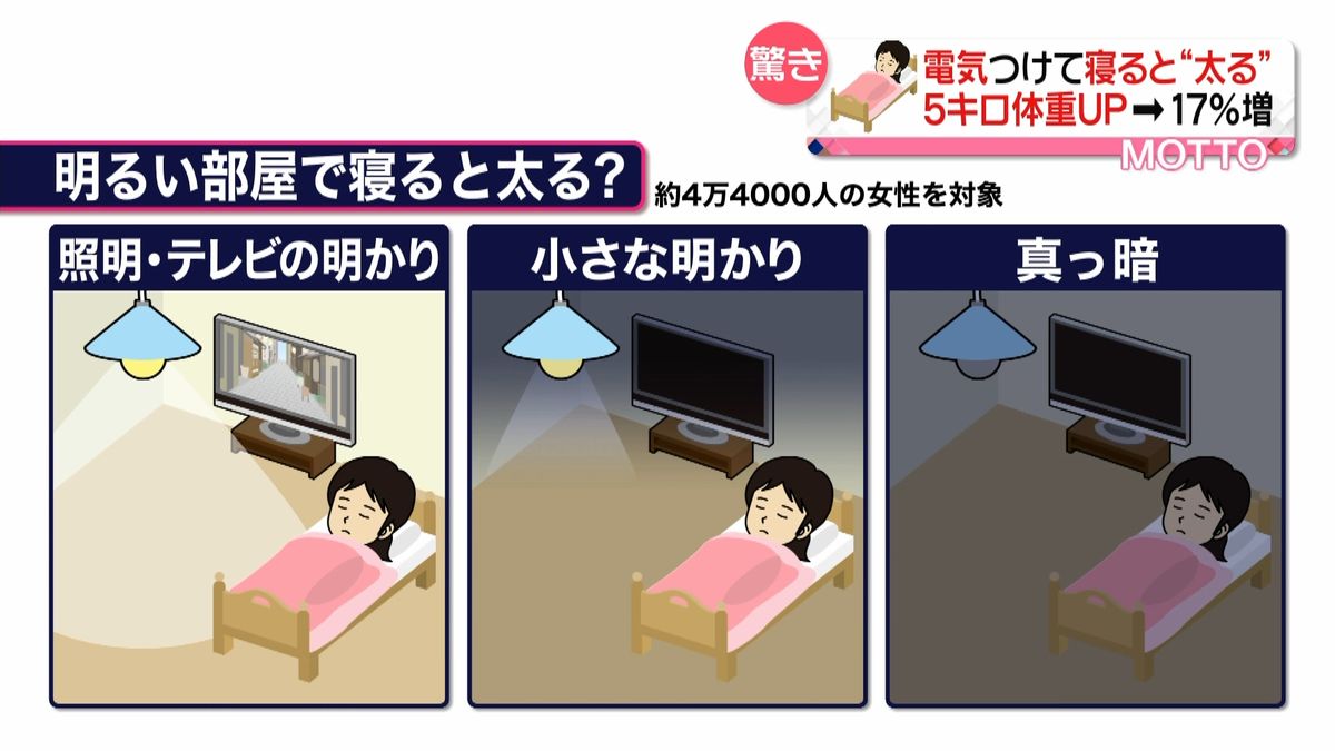 豆電球を灯した部屋で寝ると太る?睡眠不足だけじゃない肥満リスクアサジョ。
