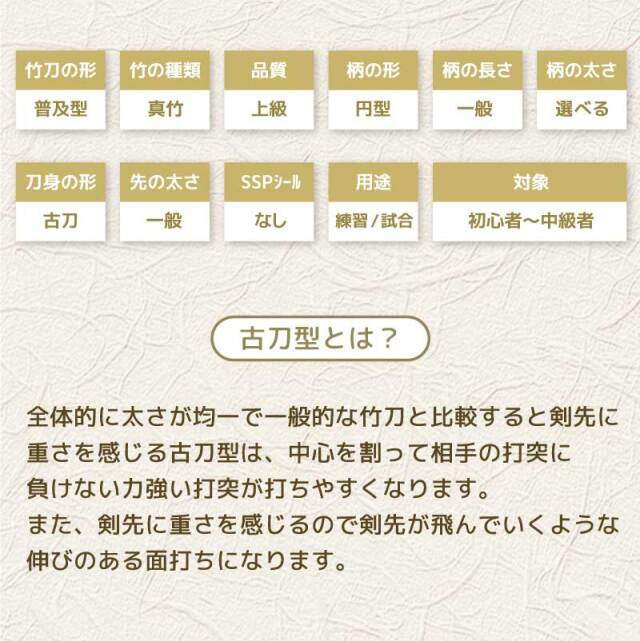 軽量仕様 39寸竹のみ古刀実戦型 勝成かつなり軽い仕様で重さは約420g〜440g柄は標準的な26mmと柄太28mmがあります特選真竹で肘を痛めた方や女性用として人気全剣連の竹刀基準より軽量設計の為SSPシールは付きません送料無料 北海道沖縄県を省く剣道具商 一閃。