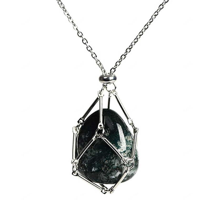 Amazon.co.jp: 天然水晶ネックレス - タンブル スピリチュアル ヒーリング クリスタル ネックレス ペンダント - ネックレス ケージジェムストーン ジュエリー ギフト - 女性と男性のためのチャクラ ネックレス,Aquatic Agate : ファッション。