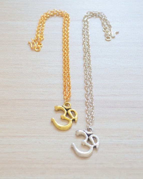 Om ネックレス、チェーン付きの上品なゴールド シルバー Om ペンダント、神聖なヒンズー教の神の宗教的なネックレス、スピリチュアルなヨガ チャクラサンスクリット Aum ジュエリー - Etsy 日本。