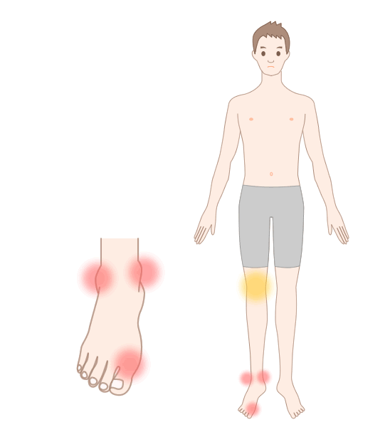 痛風発作が起きやすい場所 好発部位 はどこ?どんな症状が現れる。