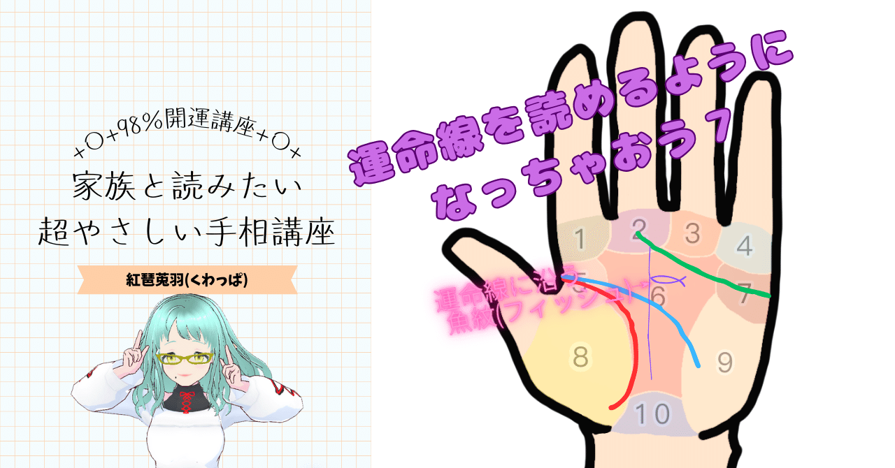 魚紋はフィッシュともいうんだけども、このマークが現れると努力している人にとってあと一押しを助けてくれる幸運期の到来をお知らせしてくれるマークだよ 運命線に現れたときはお仕事関係!6番の位置は火星平紅琶菟羽98% くわっぱ。