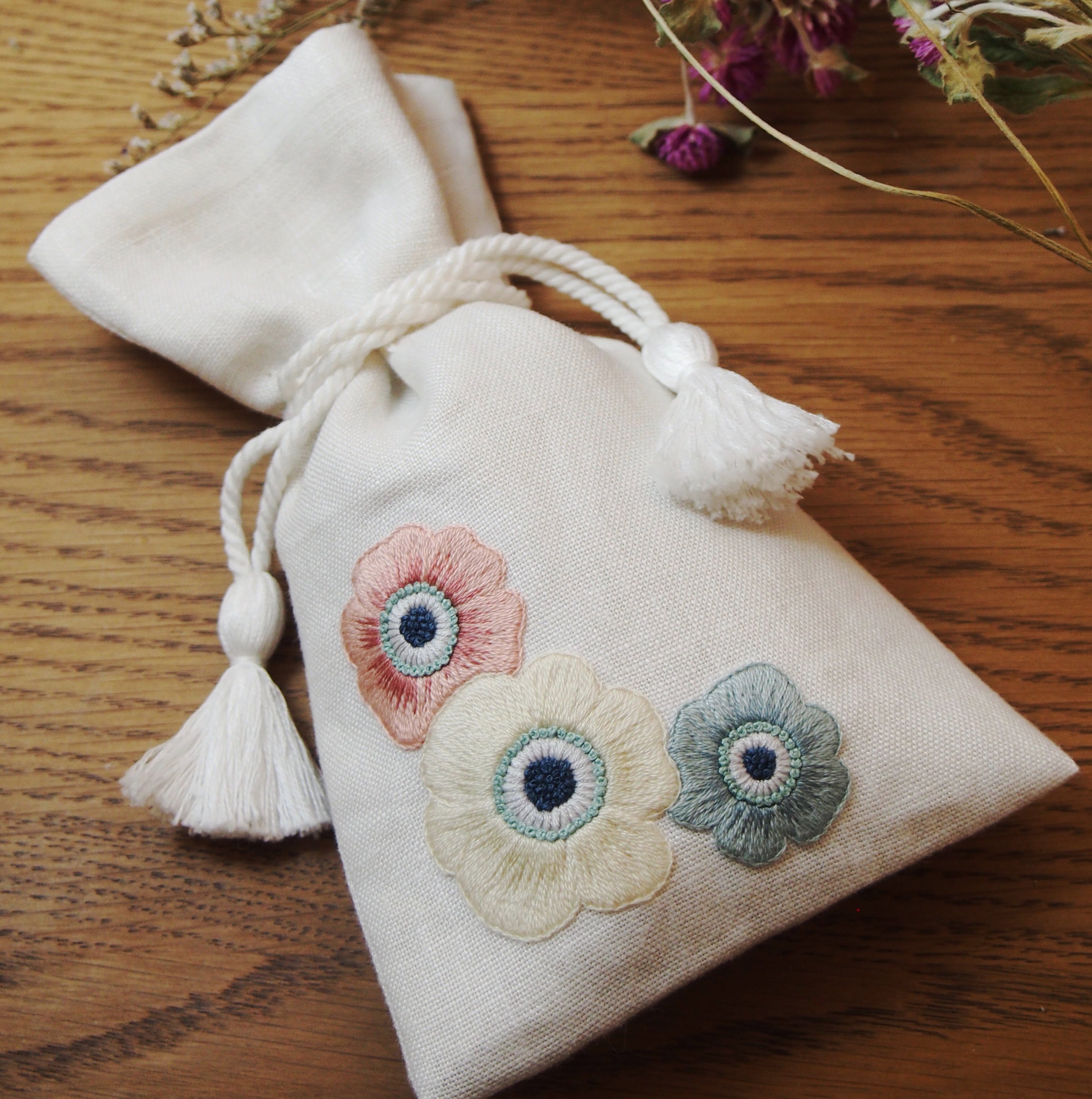 刺繍のキットアネモネの巾着ポーチA LA MANIERE D'ANTAN powered by BASE。
