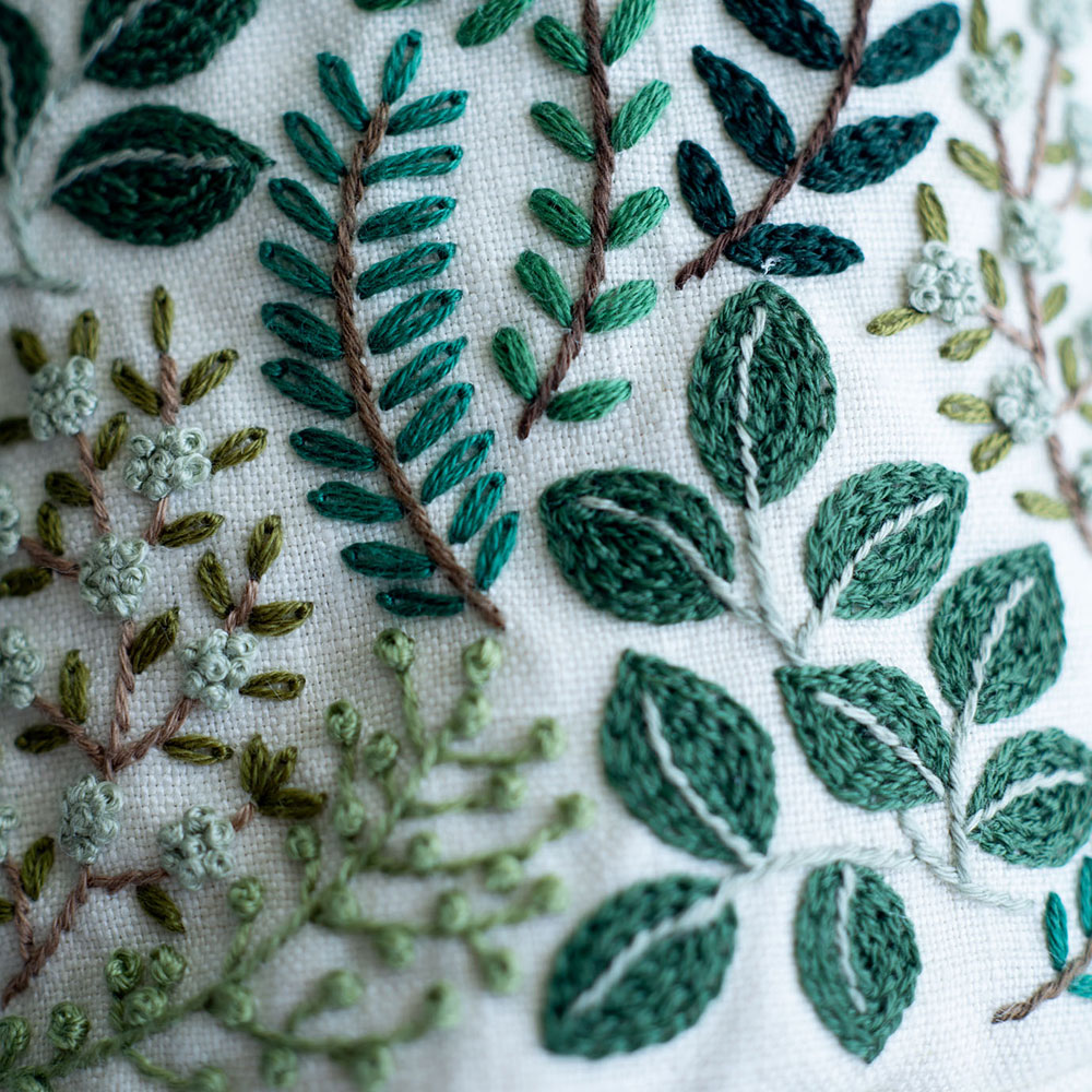 丸底巾着 グリーンリーブス ~『yulaの幸せの刺繍』刺しゅうキットシリーズ。
