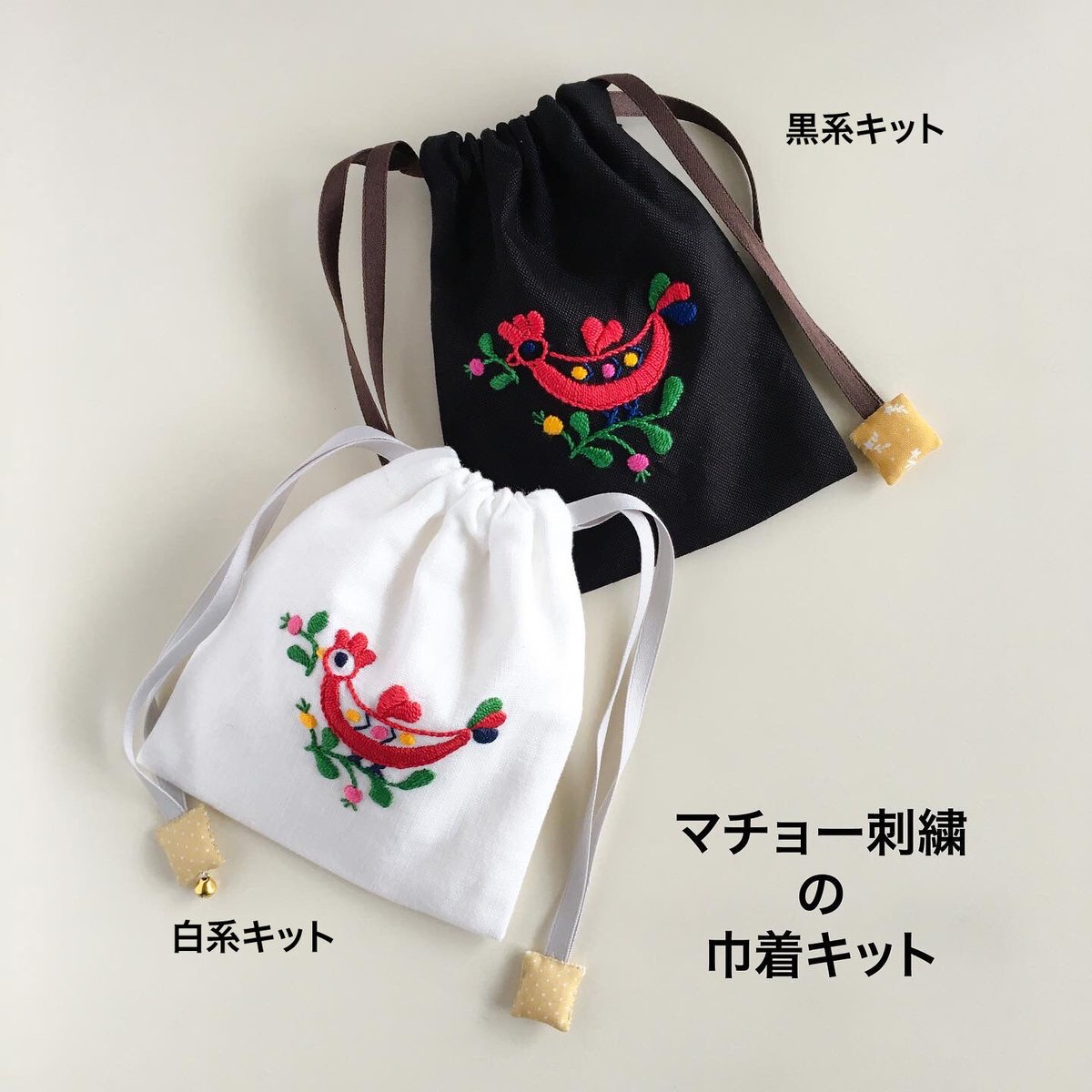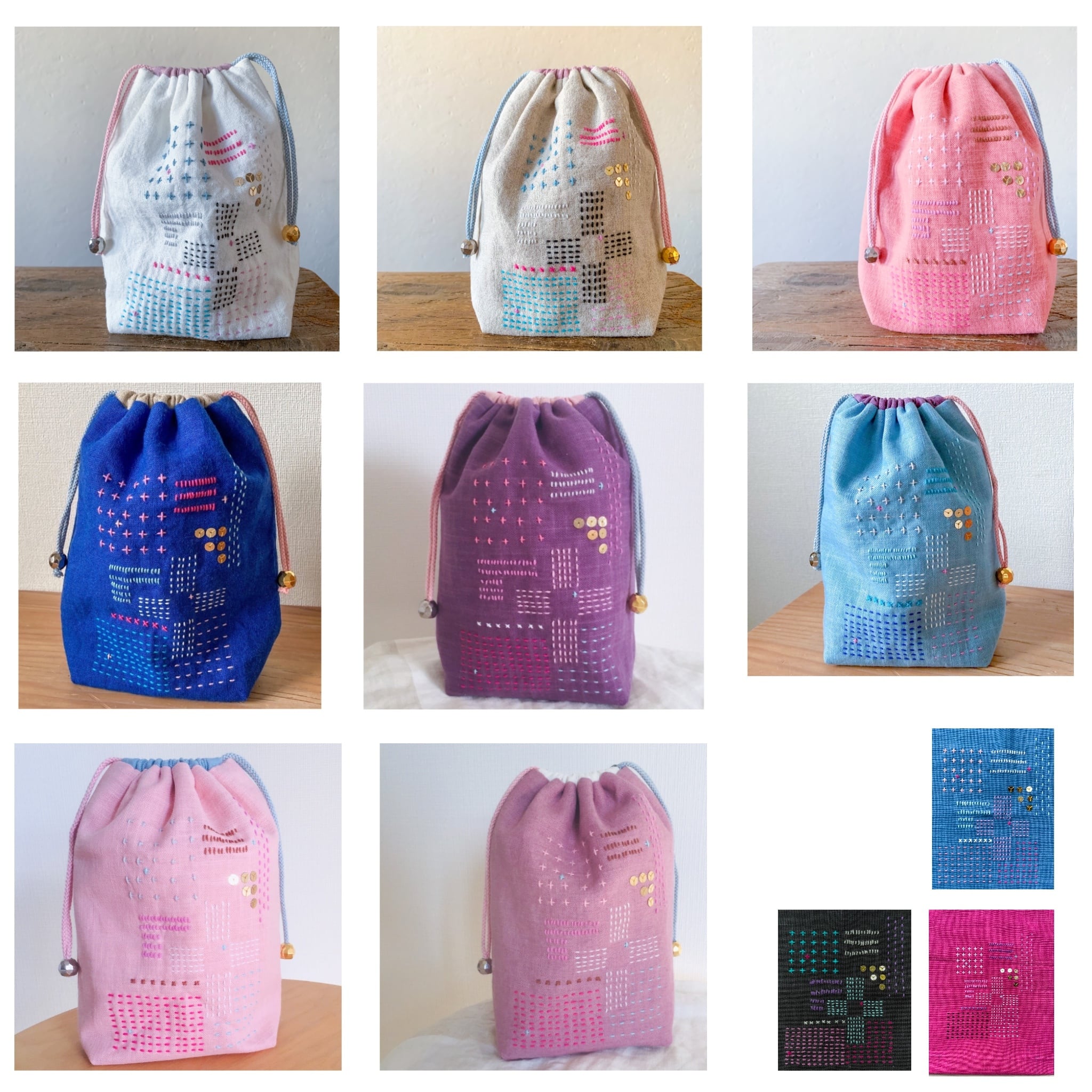手作りキット≪ komihinataさま監修 刺繍入りヌビ生地で作る巾着バッグ キット ≫デコレクションズオリジナル キット 商品 ハンドメイド│バッグ│作り方説明書付き。