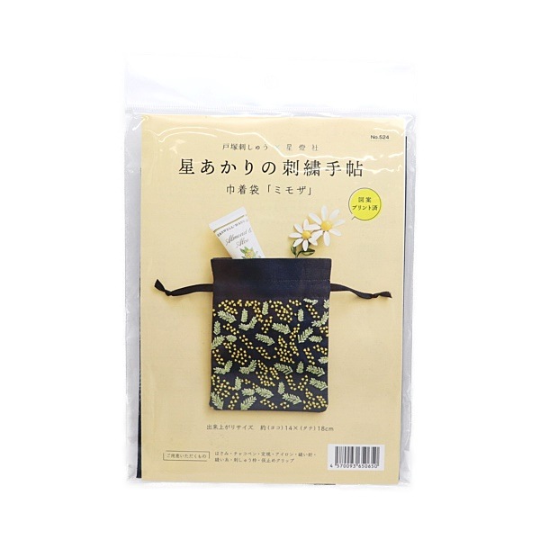 刺繍キット 『星あかりの刺繍手帖 巾着袋 ミモザ ペールグレー 543』 戸塚刺しゅう すべての商品 ホビー材料の通販「ユザワヤ公式ネットショップ」。