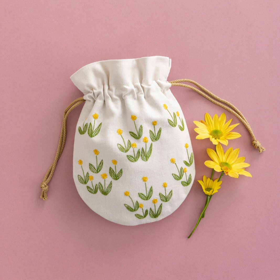 刺繍キット yulaのこころ躍る草花刺繍巾着 「可憐なフラワーサークル」紡ぐ布屋 ron。