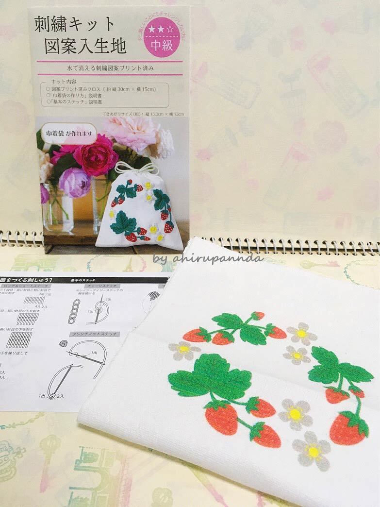 セリア巾着になる刺繍キット イチゴ柄: 作ってる時間が楽しいから。