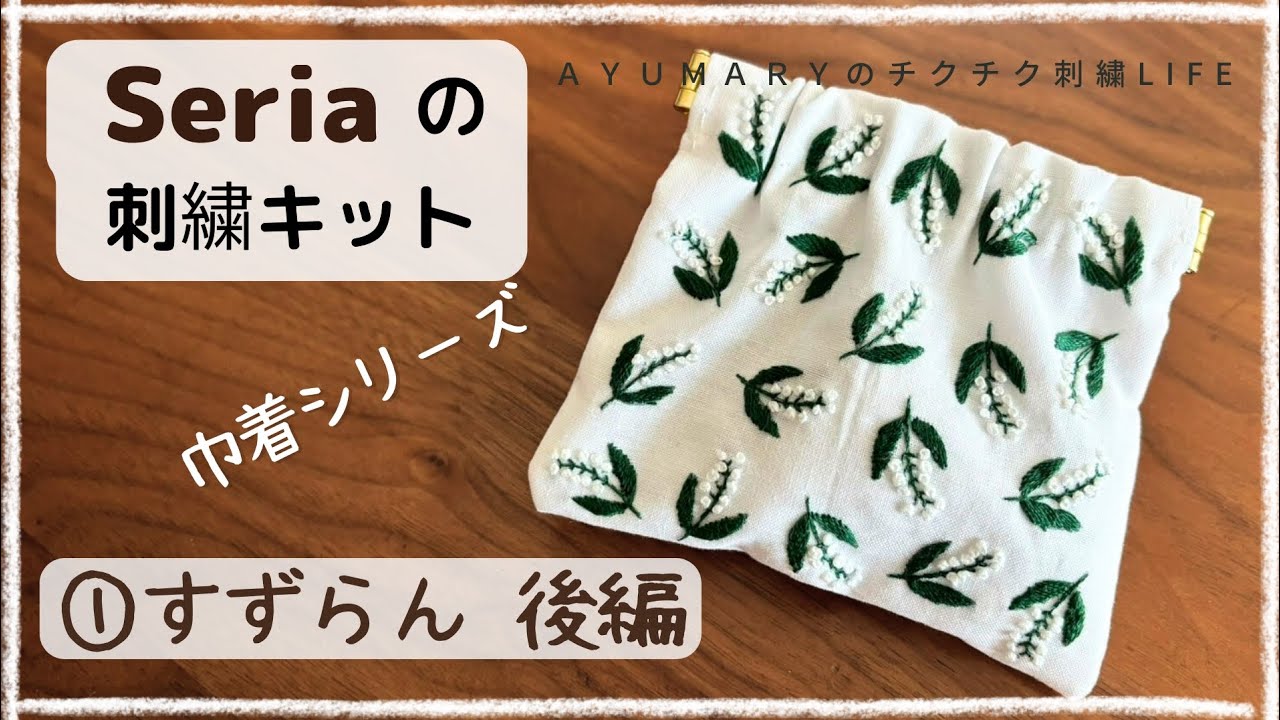 巾着シリーズ・Seriaの刺繍キット ①すずらん後編 バネ口金具 刺繍 ハンドメイド ポーチ embroidery。