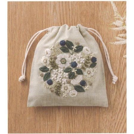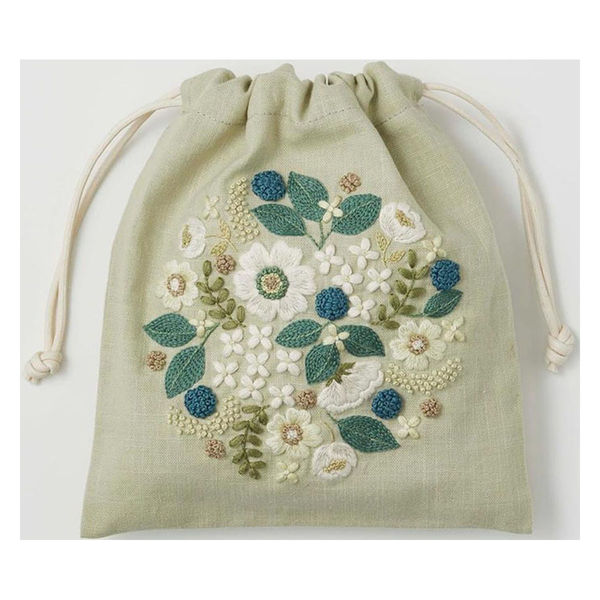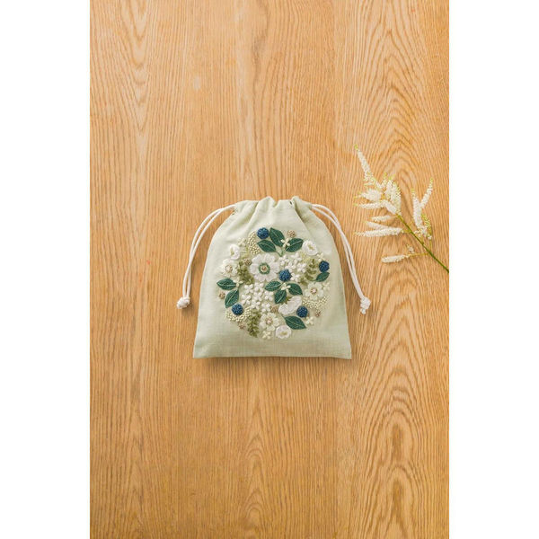 星あかりの刺繍手帖 丸巾着袋 刺しゅうキット『花飾り』No.557 - 手芸の丸十 オンラインショップ│生地・布・手芸用品の通販。