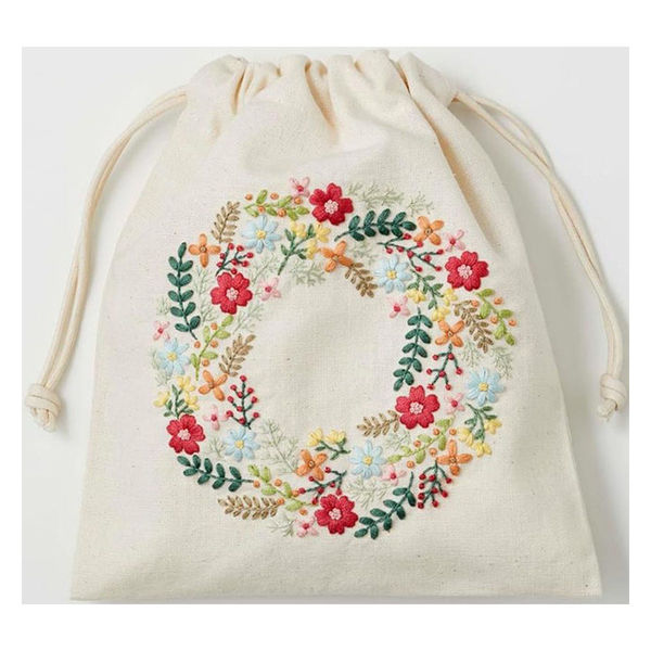 CSK542403 刺繍キット yulaのこころ躍る草花刺繍 巾着「小花のリース」個 「手芸材料の卸売りサイトChuko Online」。