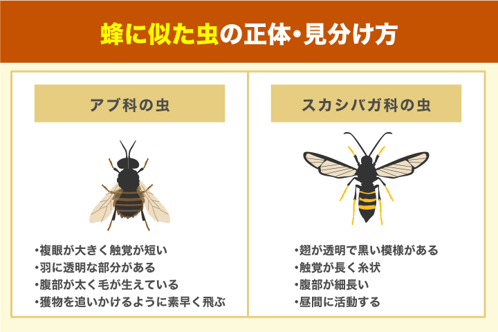蜂に似た⾍に要注意!蜂みたいな虫の種類や見分け方を解説ハチ駆除119番。