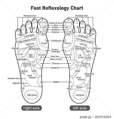足裏の反射区・足つぼ モノクロ図解イラスト 英語版 のイラスト素材83453664- PIXTA。