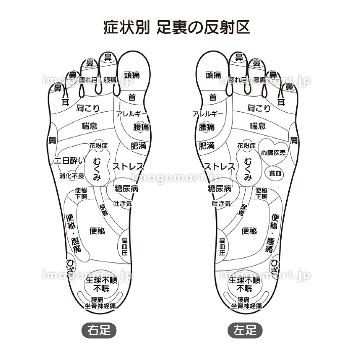 症状別足裏の反射区・足つぼ モノクロ図解イラスト173086795 毎月1点無料 フリー のストックフォト イメージマート。