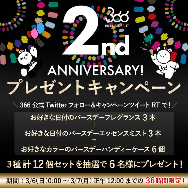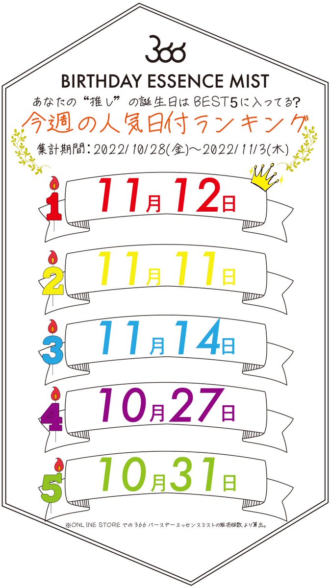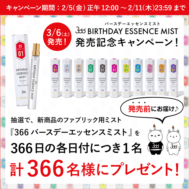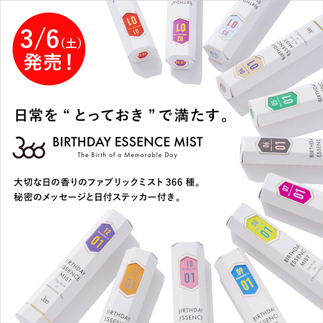 新商品 3月6日 土 0:00~『366 BIRTHDAY ESSENCE MIST 366 バースデーエッセンスミスト 』 ONLINESTOREにて先行販売開始! - 366 サンロクロク 366 サンロクロク。