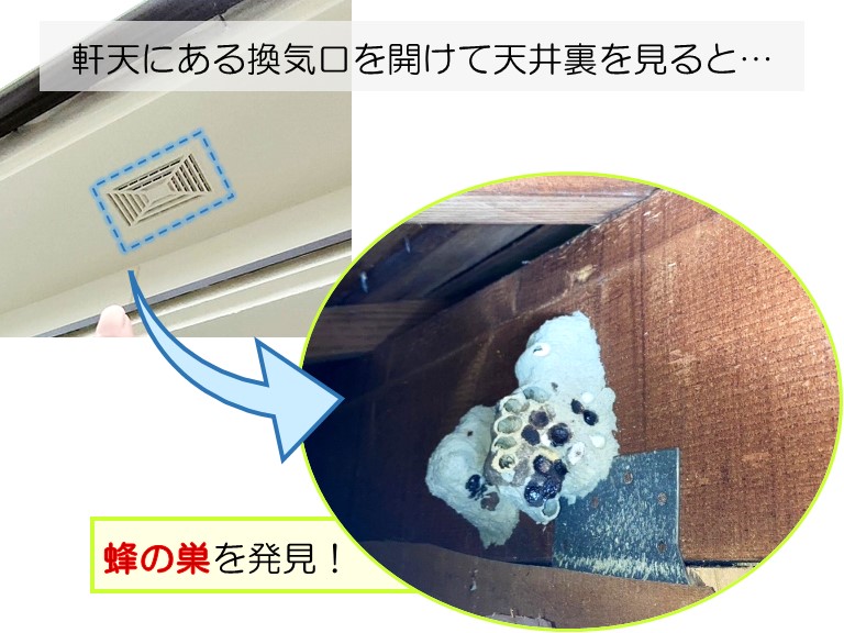 換気口ダクト内に蜂が頻繁に出入り!」奈良市の蜂の巣駆除板倉敦司。