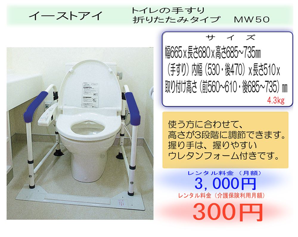 洋式トイレ用手すり 福祉用具レンタル販売・介護ベッド出張買い取り専門店。