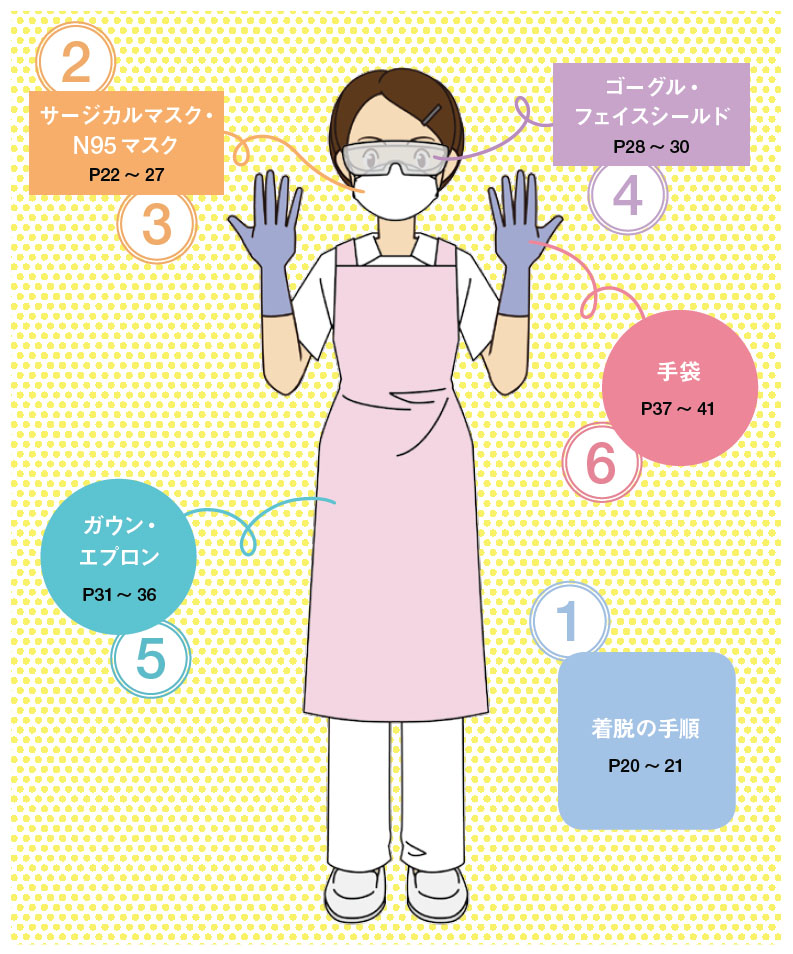 安全器材と個人用防護具 - 個人用防護具 PPE の脱着手順。