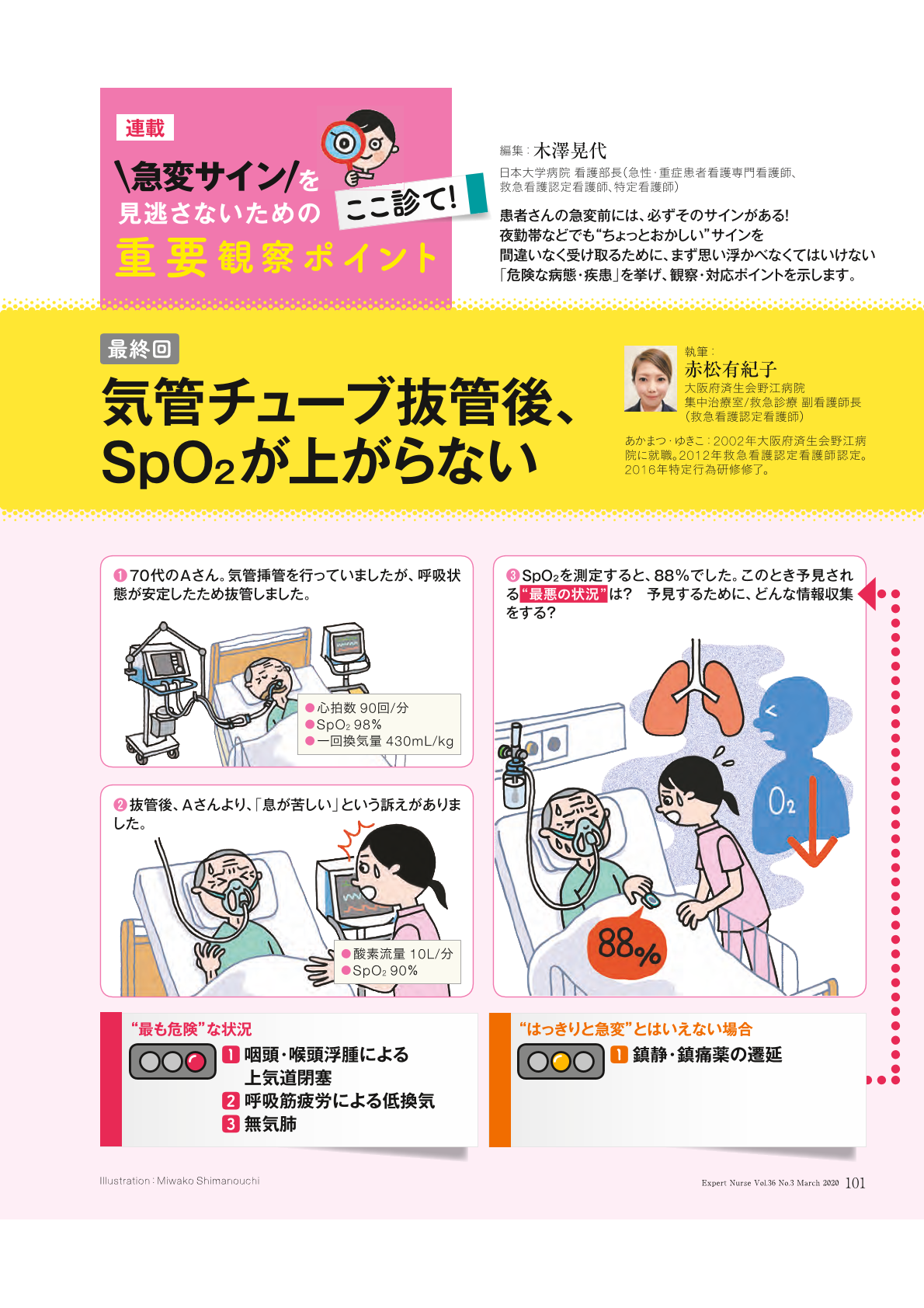 急変サインを見逃さないためのここ診て! 重要観察ポイント 最終回気管チューブ抜管後、SpO2が上がらないエキスパートナース 36巻3号医書.jp。
