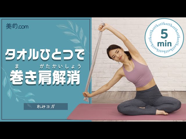 タオルひとつで巻き肩改善ストレッチれみヨガ - YouTube。